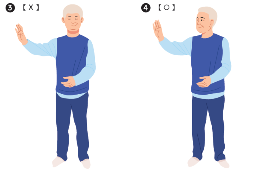 ④ 동작의 크기는 조절해서 의도적으로 너무 큰 자세를 취하지 않도록 합니다.