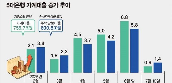 📊 가계대출 증가세 ‘뚝’…6월 대비 40% 수준