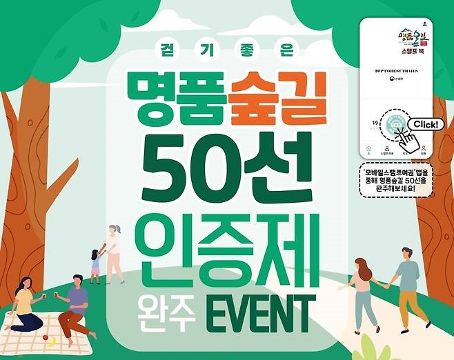 산림청은 오는 12월 14일까지 전국 명품숲길을 대상으로 '명품숲길 50선 완주 인증제'를 운영한다고 15일 밝혔다.