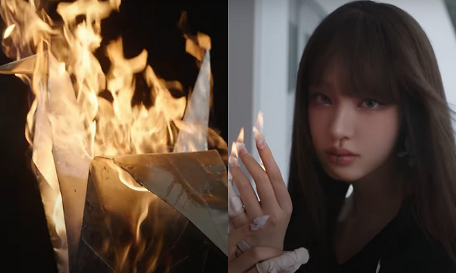 멤버들은 큐피드 복장으로 등장해 종이학을 태우거나, 날개 달린 오브제를 부수고, 인형을 향해 활과 총을 겨누는 등 기존 러블리 이미지와는 다른 강렬한 퍼포먼스를 보여줬다.