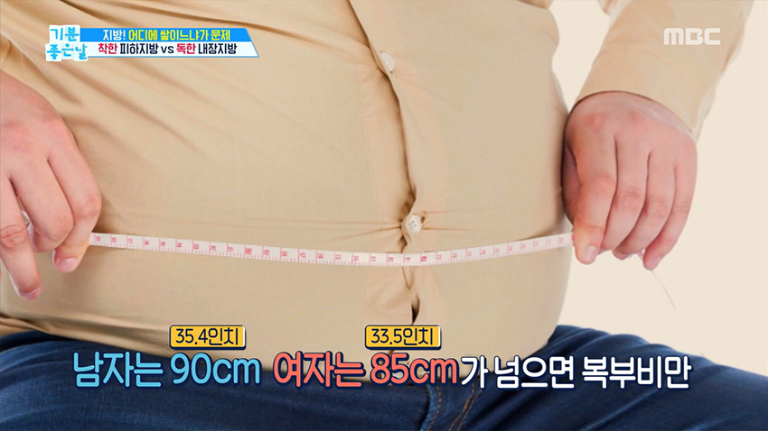 - 남성: 허리둘레 90cm 이상 (약 35.4인치)