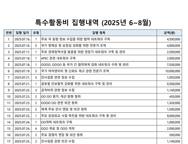 - 국정 현안·공직 비위 정보 수집(9700만 원)