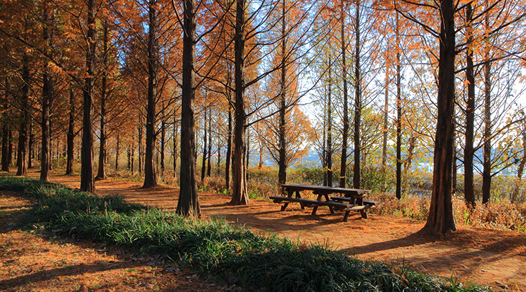 수형이 아름다운 메타세쿼이아까지 다양한 수종이 어우러져 있다.