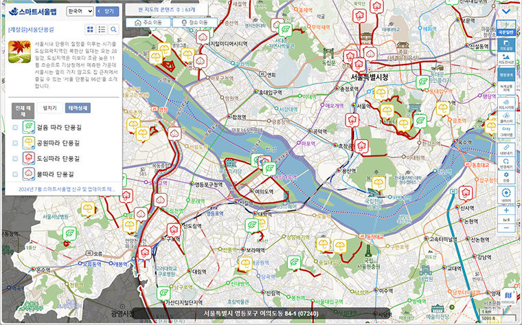아이콘을 클릭하면 주변 명소와 교통 정보까지 확인할 수 있어 시민들의 편의를 높였다.