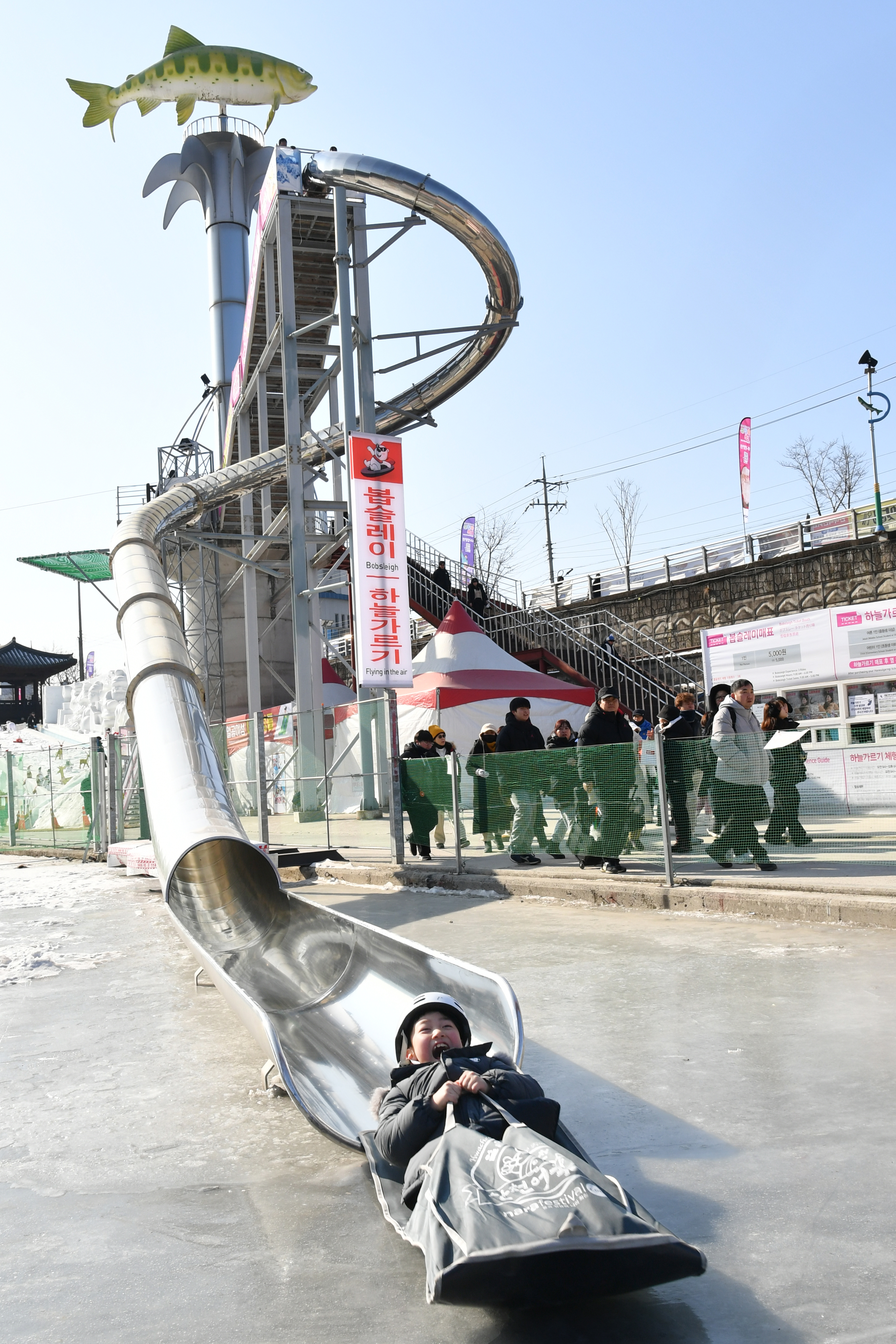 - 즐길 거리 다양화: 사진 속 봅슬레이처럼 얼음 썰매, 눈썰매, 세계 최대 실내 얼음 조각 광장 등 낚시 외의 즐길 거리가 풍성해 가족 단위 방문객의 만족도가 매우 높았습니다.